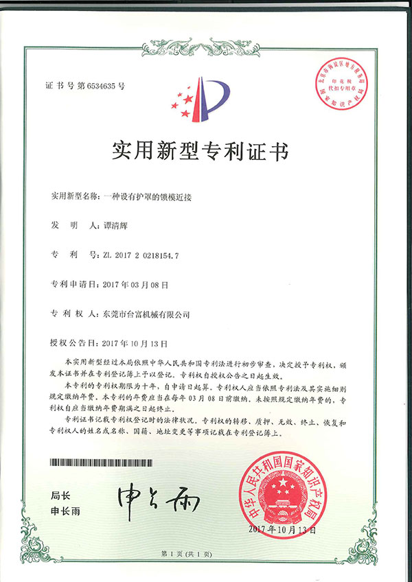 一種設(shè)有護(hù)罩的鎖模近接專利證書